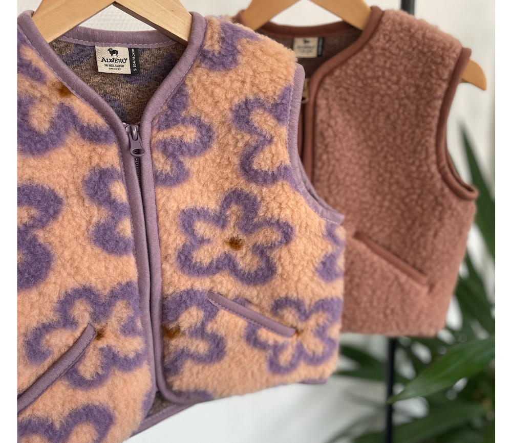 Alwero – Bodywarmer „POS“ Junior, FLOWS APRICOT, Merinowolle, ultra light – LIMITED EDITION