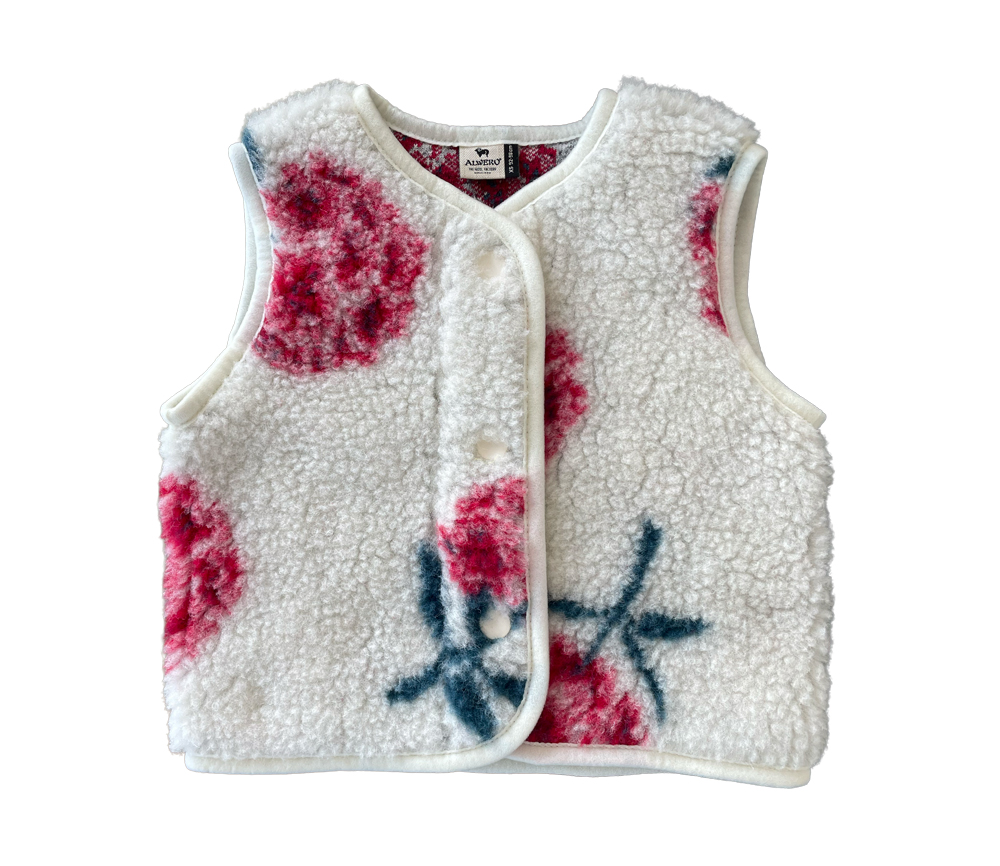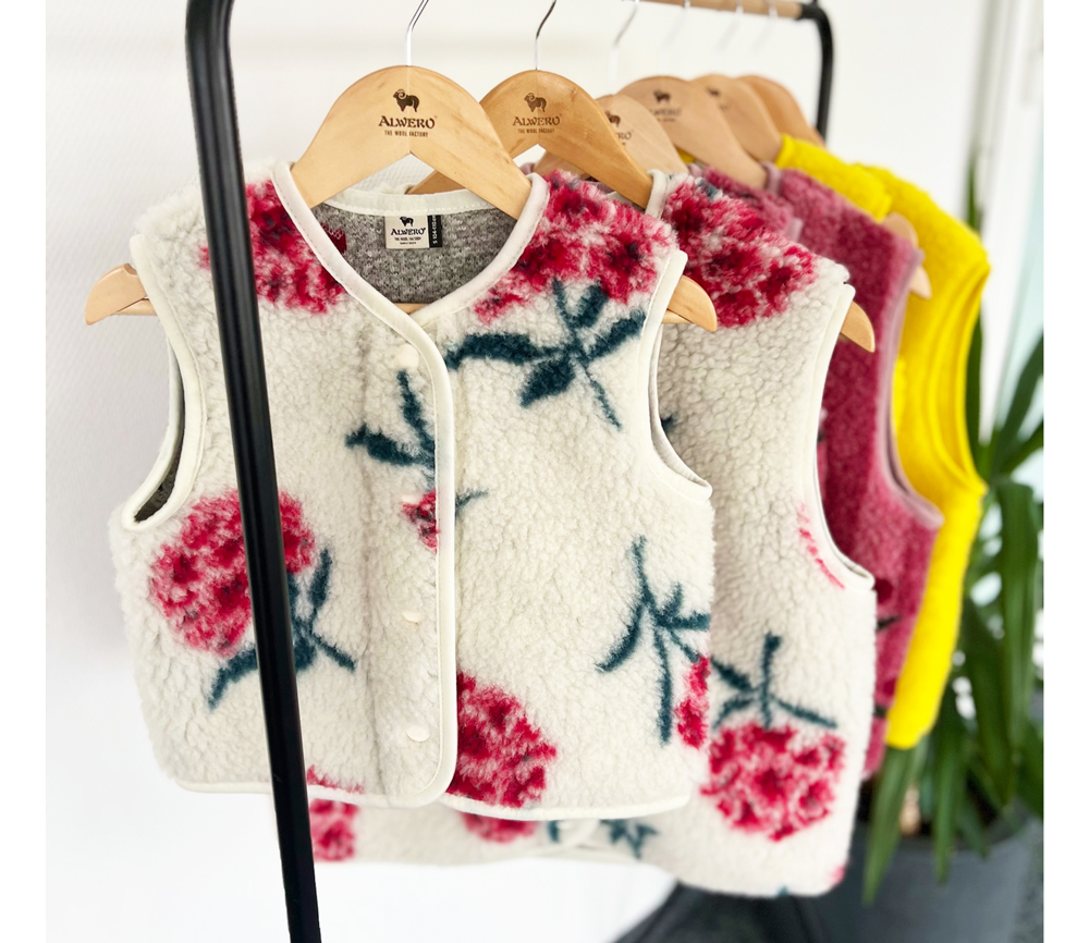 Pflegehinweis: Wolle ist von Natur aus selbstreinigend. Oft genügt es, die Weste gut auszulüften oder vorsichtig auszubürsten. Die Weste muss vor dem ersten Tragen nicht gewaschen werden.
