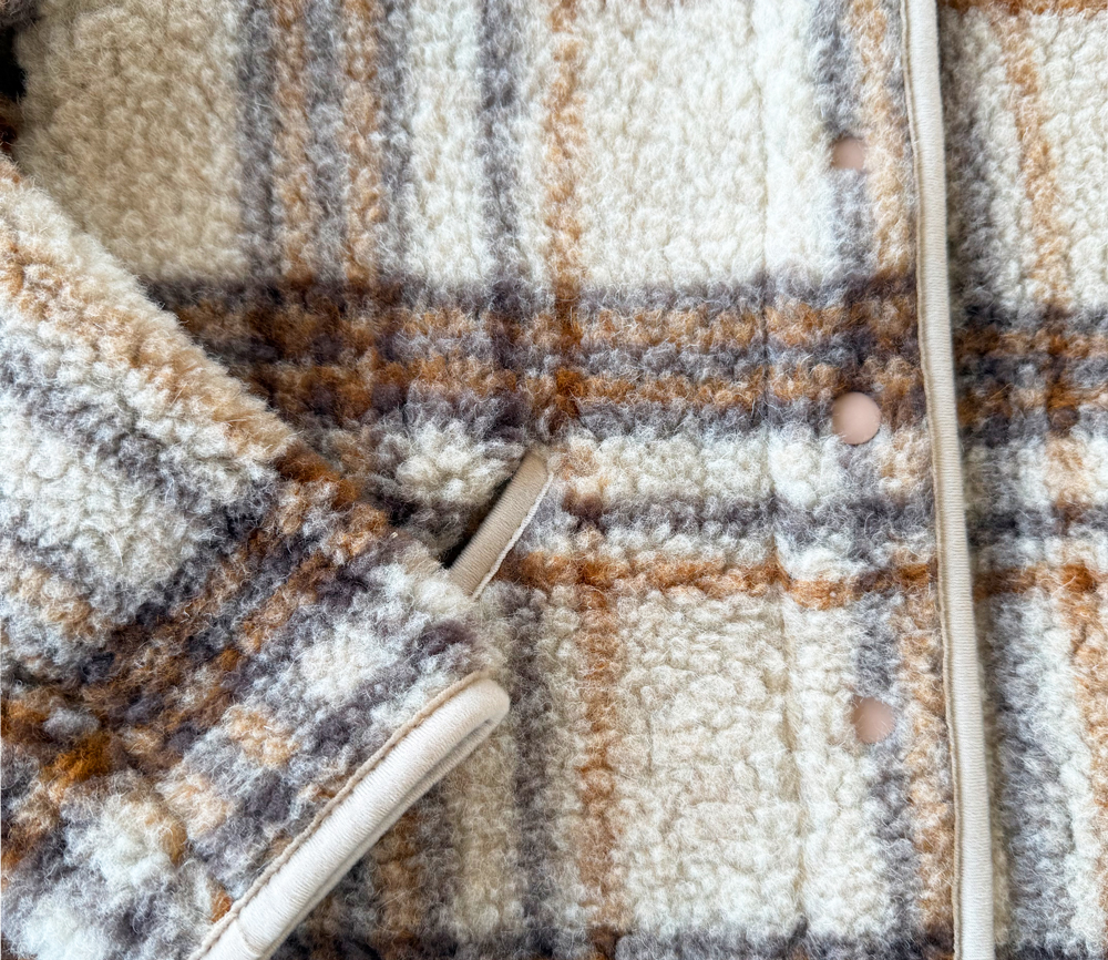 - ULTRALEICHTE WOLLE 100 % Wolle in einem Fleece mit Schaffellstruktur und einer sehr leichten Formel. Der Stoff zeichnet sich durch außergewöhnliche Weichheit und Elastizität aus, wodurch er uns sanft umhüllt. Charakteristisch für dieses Material ist seine schwarze Basis, die die Farbe des verwendeten Wollvlieses intensiv zur Geltung bringt.