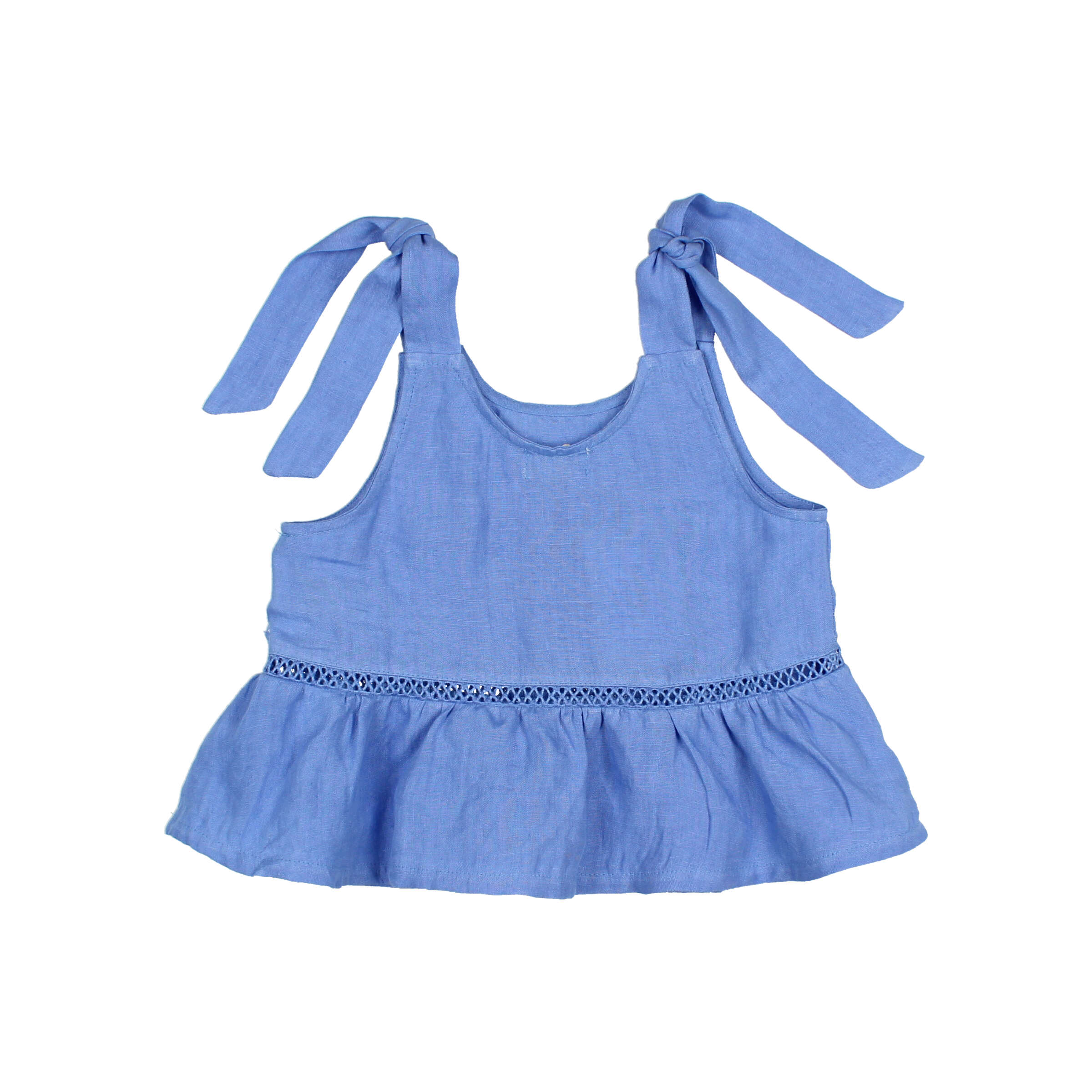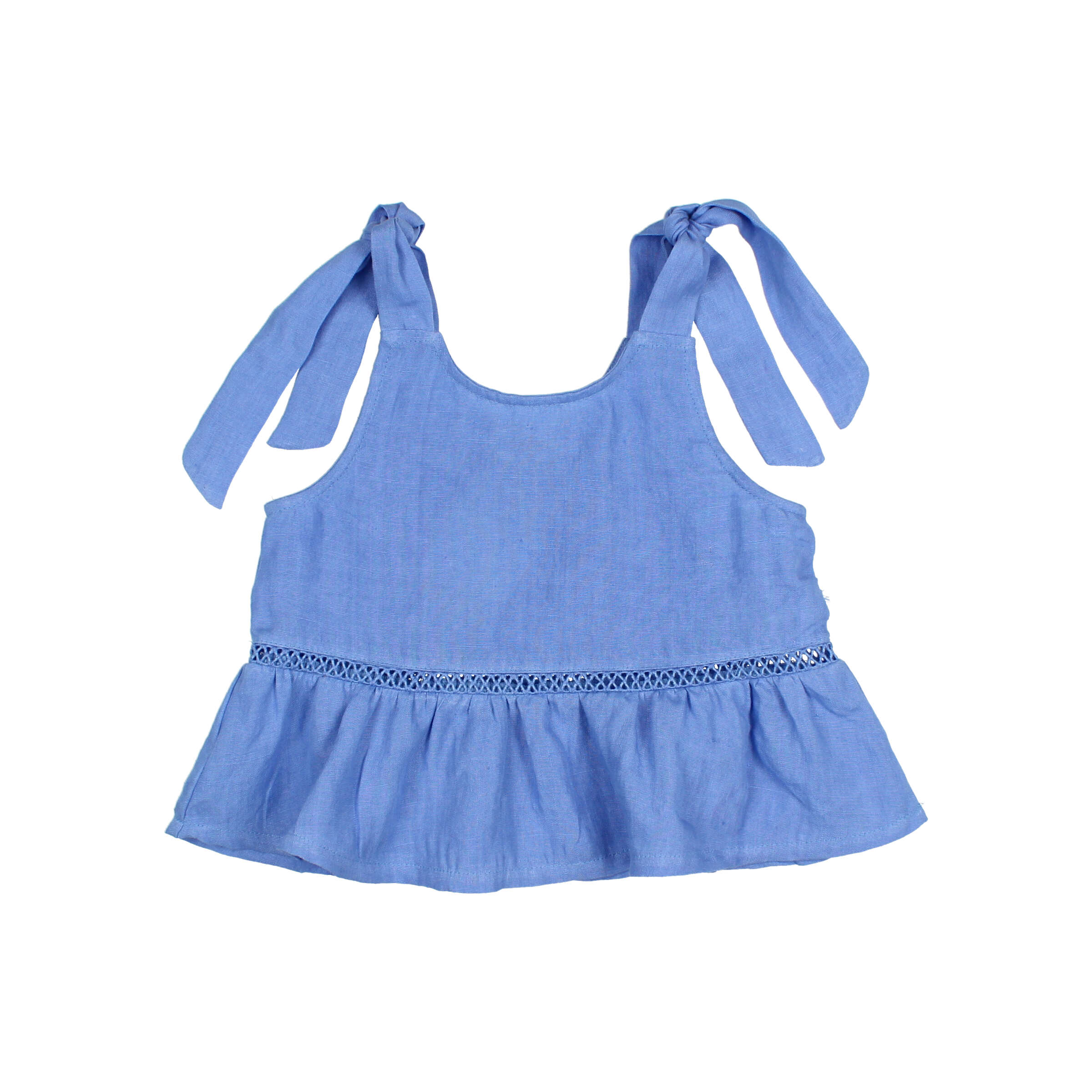 Top aus 100 % Leinen mit weichem Wascheffekt und lässiger Passform. Gerüschter Saum. Entre-deux-Detail an der Passe. Rundhalsausschnitt und Träger mit Bändern. 100 % Leinen. Hergestellt in Portugal.