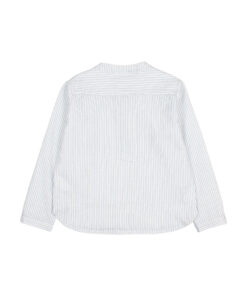 Langärmliges Baumwollhemd aus Seersucker mit Streifenmuster. Mao-Kragen. Knopfleiste mit Holzknöpfen auf der Brust. Kontrastierende Stickerei an der Seite des Saums. 100 % Baumwolle. Hergestellt in Spanien.
