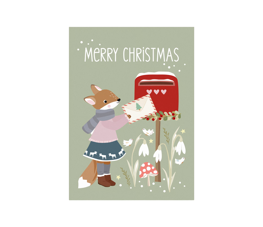 Die kleine Füchsin schickt ihre Weihnachtspost noch schnell an alle ihre Freunde.