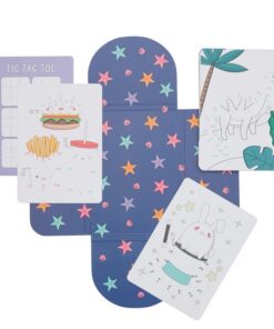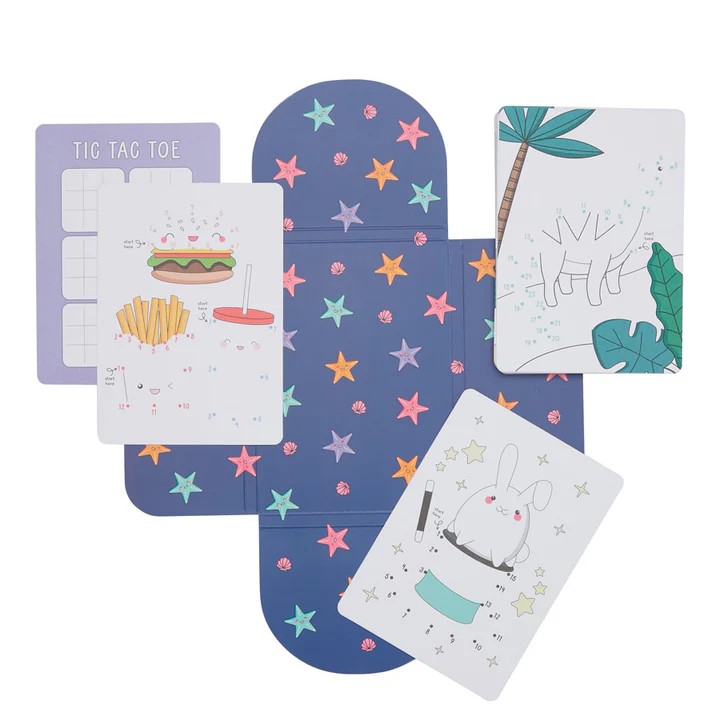 Dieses „Punkte verbinden“-Rätselbuch enthält 24 Blätter mit verschiedenen Zeichnungen – von Cupcakes bis zu Dinosauriern. Und als zusätzlichen Bonus enthält dieses Rätselbuch für Kinder auf der Rückseite jeder Seite ein Bonusspiel Tic-Tac-Toe, sodass Ihr Kind garantiert einen Nachmittag voller Spaß hat! 1 Satz Aktivitätskarten „Punkte verbinden“.