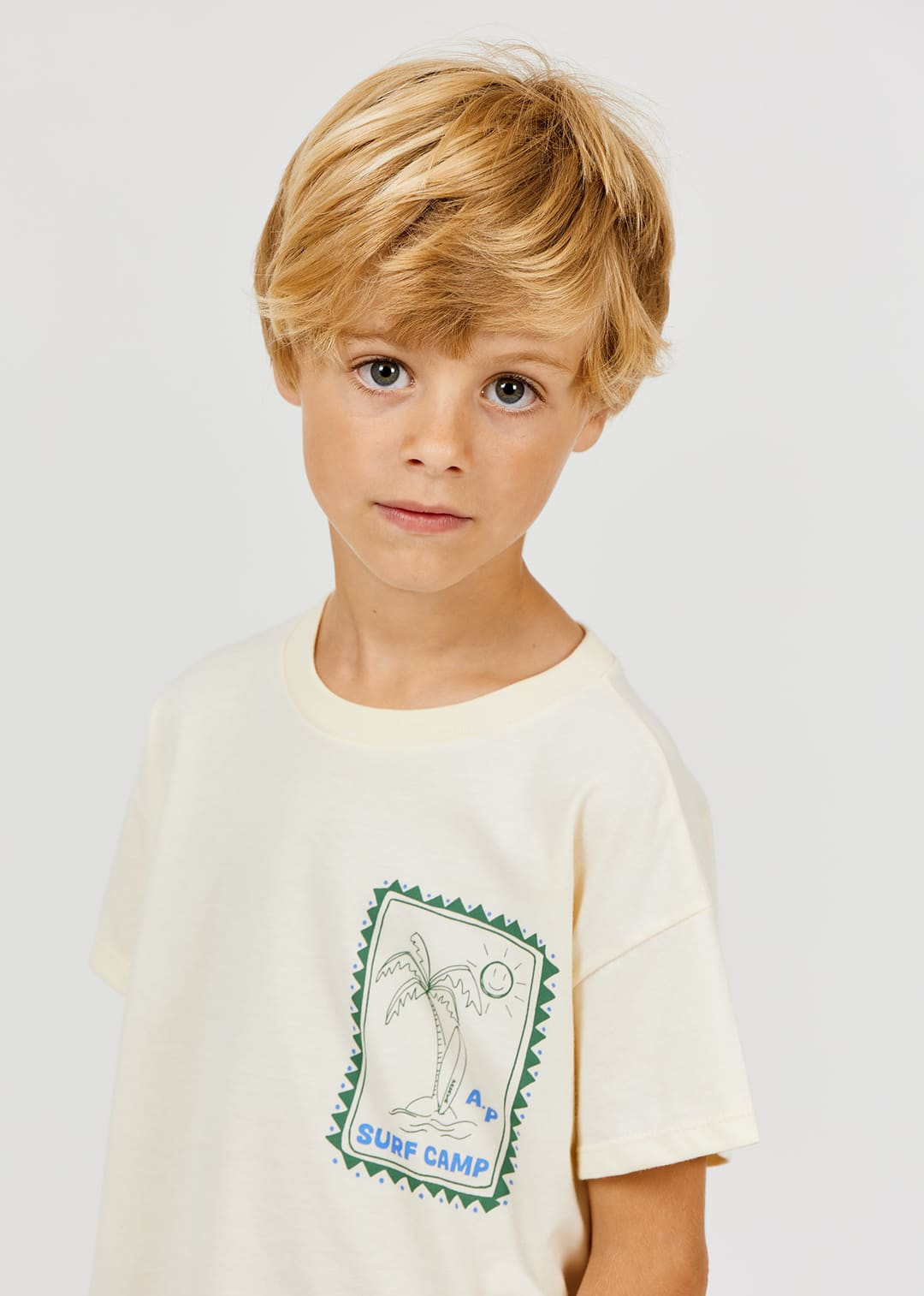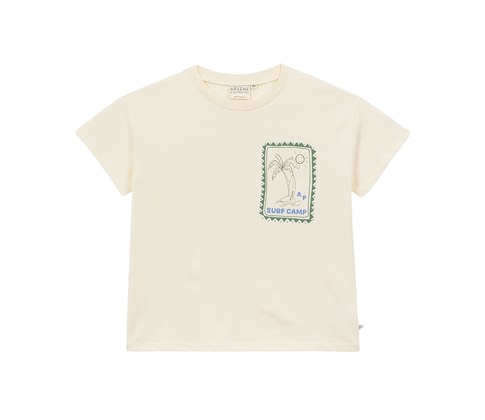 Arsene et les Pipelettes – T-Shirt SURF CAMP, ecru, Biobaumwolle