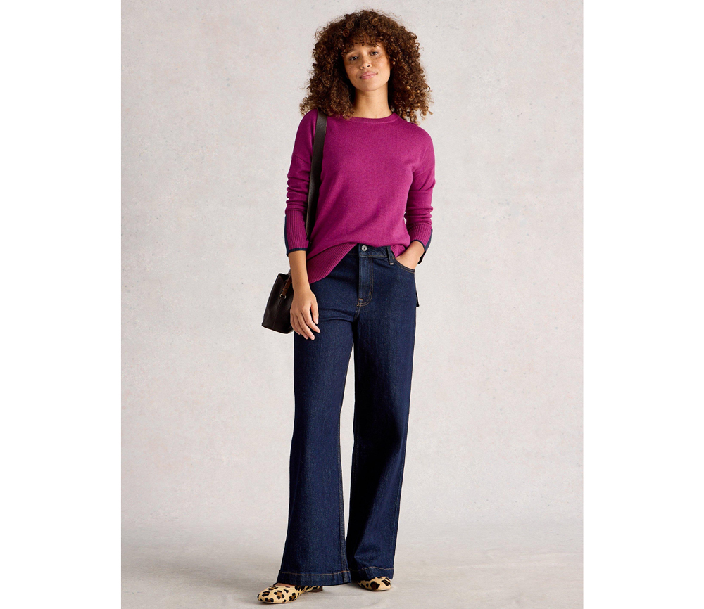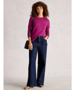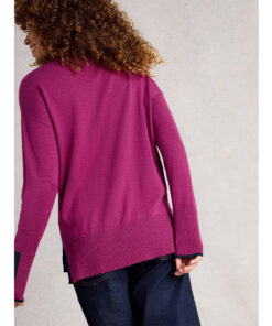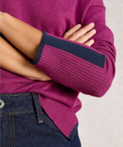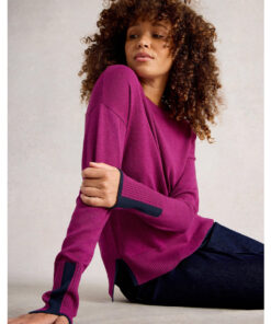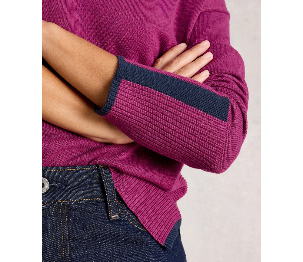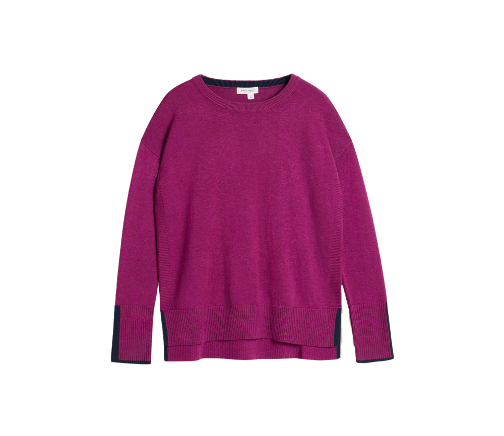 Ein hübscher Pullover, ganz leicht, im Oversize Schnitt. Das Model ist 1,75m und trägt Größe 38.